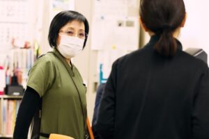 結の学校の管理者である沼崎氏は、「人を丸ごと看る」という本来の看護のあり方を大切にしています。病院での経験から、医療だけでは人の生活や人生を支えきれないと感じ、暮らしと医療を切り離さずに支える在宅看護の道を選びました。